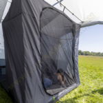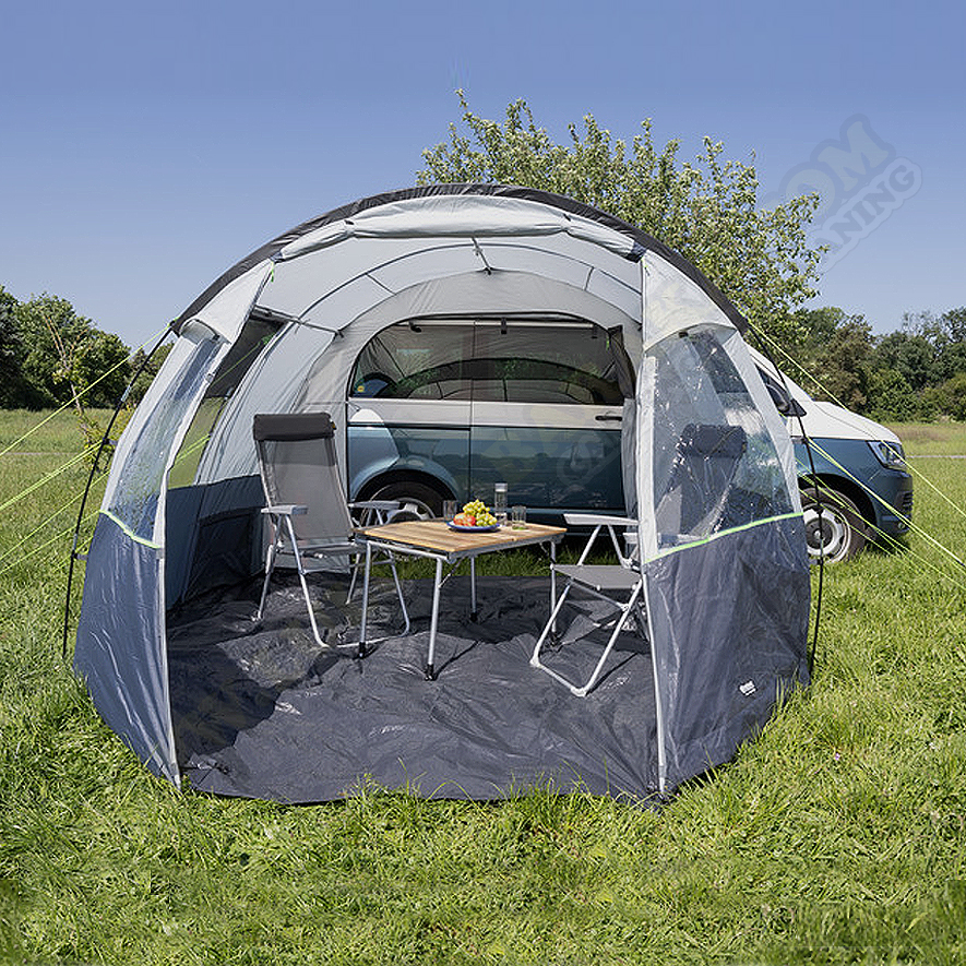 Se puede sujetar a la furgoneta sobre toldo o vierteaguas, con cuerda pasante, con ventosas (no incluidas) o imanes (no incluidos).
