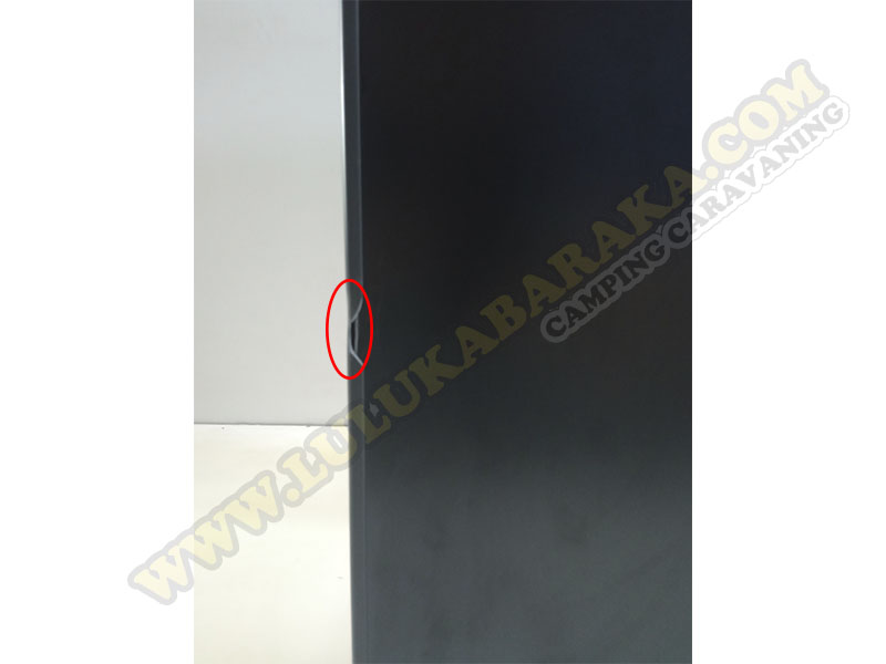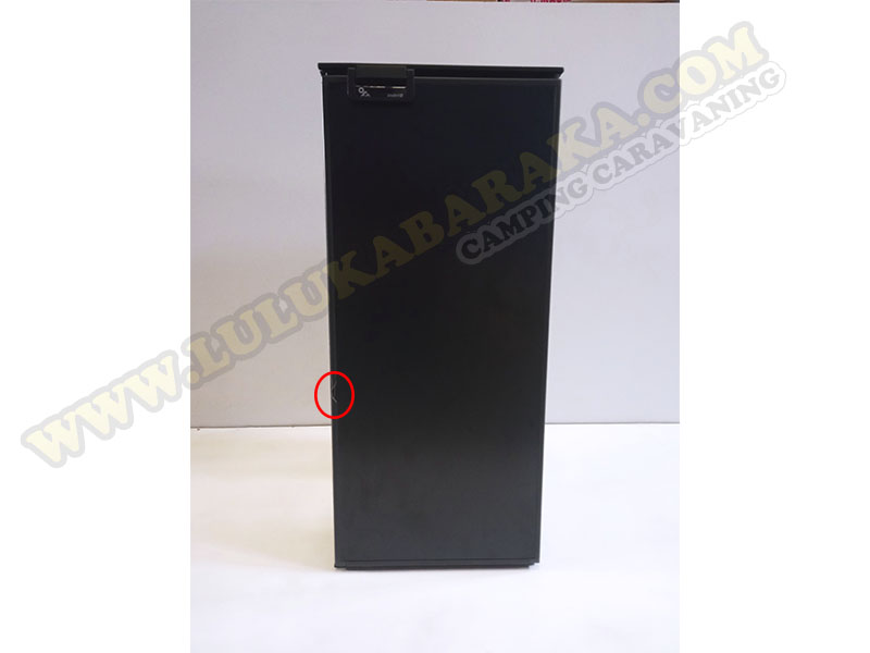 Nevera de 86 litros de capacidad con desperfecto en el marco de la puerta.