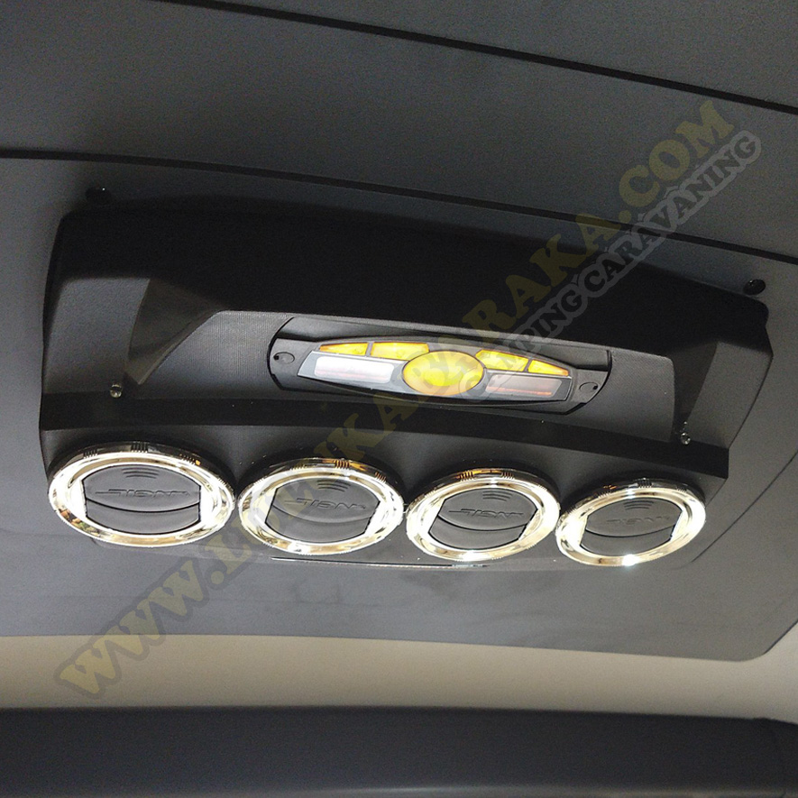 Climatizador con Bluetooth para camper y autocaravanas, con unas dimensiones externas muy contenidas (70 cm de ancho, 50 cm de largo y tan solo 11 cm de altura máxima una vez montado con la goma de ajuste) y con un plafón interno (plafón de color gris) de nuevo diseño con 4 salidas de aire 360º giratorias y preparado para unos techos más gruesos. A destacar sus nuevas bombas de agua con tecnologia "Brushless" (sin carbones), no emite prácticamente sonidos. El climatizador cuenta con protección UV para garantizar su duración y evitar modificaciones en su color. Puede utilizar el mismo depósito de agua potable del vehículo ya que gracias al sistema de pre enfriado, el agua NO tiene retorno al depósito. Dispone de un sistema único patentado de Pre-Enfriamiento del agua, este revolucionario sistema, permite garantizar el máximo poder de frio, especialmente en días de calor agobiante. NUEVA CENTRALITA, donde podrá comandar su equipo Neil y a su mismo tiempo podrá también dirigir el equipo, programar etc desde su teléfono movil a traves de la aplicación APP NEIL tanto para telefonos con sistema operativo Android como Apple y con una posibilidad de programar tanto la hora de encendido como la de apagado.