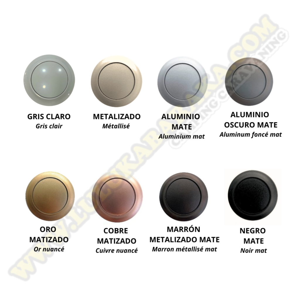 Ref: ¿Quieres hacer alguna pregunta sobre este producto? Sigues con alguna duda Nombre: * Email: * Mensaje: Leo y acepto la política de protección de datos* donde sea necesario clicar para continuar. * Leo y acepto la política de protección de datos* donde sea necesario clicar para continuar. Le informamos que los datos que nos remita a través de este formulario electrónico quedarán incorporados en los sistemas de información de LULUKABARAKA, S.L.. Esta comunicación se utilizará exclusivamente para atender su petición. Mediante la indicación de sus datos, y en conformidad con el establecido en el artículo 4.11 del Reglamento (UE) 2016/679, de 27 de abril del 2016, usted otorga su consentimiento inequívoco a LULUKABARAKA, S.L., porque proceda, en cumplimiento de las finalidades mencionadas en el apartado anterior, al tratamiento de los datos personales facilitados. Sin embargo, en cualquier momento usted podrá ejercitar los derechos de acceso, rectificación, supresión, limitación, portabilidad y oposición, a través de la dirección: LULUKABARAKA, S.L. C/ ROQUETES Nº 16 NAU 36 D POL. IND. CAN MAGRE 08187 SANTA EULALIA DE RONÇANA - BARCELONA o al email: info@lulukabaraka.com Cierre con pulsador para puertas (a escoger según listado inferior). Permite abrir la puerta desde fuera y desde dentro. Incluye tope cierre pulsador. El pomo interior es de color gris metalizado y el exterior a elejir (ver foto adjunta). El mecanismo es de color blanco. Medidas: Interior 8 x 4,5 x 0,5 cm. Exterior Ø34 mm. Agujero Ø26 mm. Ref. Descripción Versión Precio Qtt. añadir CPUDME Cierre para puertas doble con pulsador metalizado 11.02€ Consultar por email (info@lulukabaraka.com) Avisar cuando esté disponible CPDAM Cierre para puertas doble con pulsador aluminio mate 11.35€ Consultar por email (info@lulukabaraka.com) Avisar cuando esté disponible CPDAOM Cierre para puertas doble con pulsador aluminio oscuro mate 11.66€ Consultar por email (info@lulukabaraka.com) Avisar cuando esté disponible CPODOM Cierre para puertas doble con pulsador oro matizado 11.66€ Consultar por email (info@lulukabaraka.com) Avisar cuando esté disponible CPDCM Cierre para puertas doble con pulsador cobre matizado 11.66€ Consultar por email (info@lulukabaraka.com) Avisar cuando esté disponible CPDMMM Cierre para puertas doble con pulsador marrón metalizado mate 11.43€ Consultar por email (info@lulukabaraka.com) Avisar cuando esté disponible CPDNM Cierre para puertas doble con pulsador negro mate 11.19€ Consultar por email (info@lulukabaraka.com) Avisar cuando esté disponible Otros clientes que han comprado estre producto, también han comprado estos: Cierre para puertas con pulsador metalizado Cierre para puertas con pulsador negro mate Cierre para puertas con pulsador mini metalizado Ducha para toma exterior RK Reich Vaso de expansión universal A 20 Fiamma Plato ducha 58x58cm
